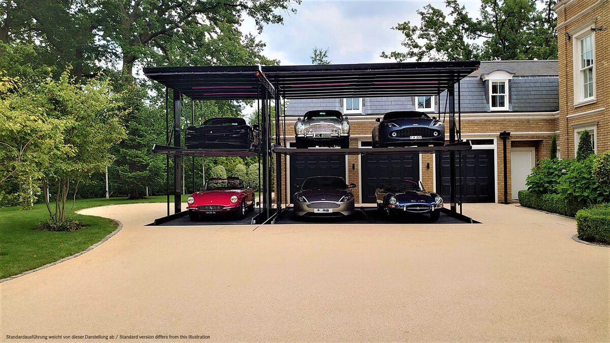 The invisible Parklift 462 will be lowered into a pit, while the horizontal platforms below ground get visible just when raised for access or exit. The upper platform can be integrated to the surrounding surface with different coverings. The Parklift 462 is suitable for courtyards, access areas or retrofit projects. Single unit for 2 cars and double unit for 4 cars.