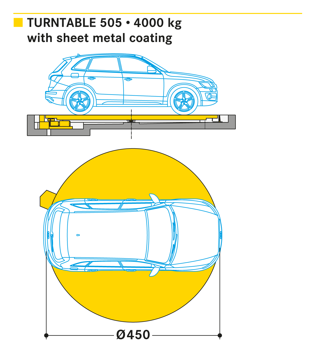 In all areas where it is only possible to drive forwards or where place for parking manoeuvres is stricted, the vehicle is simply rotated into the required parking position with Turntable 505. Turntable rotation constitutes the ideal solution in the event of narrow and limited parking space entries and exits.