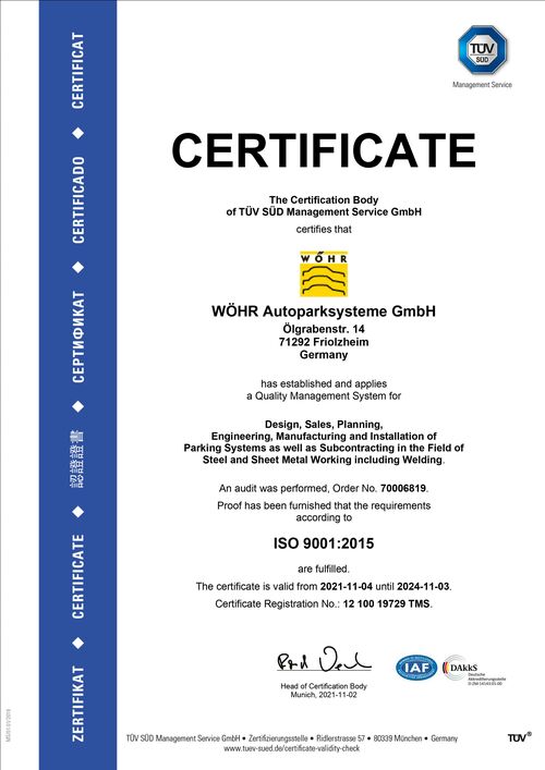 Quality management systems have been matters of course in the automotive industry for decades. WÖHR also has been working with a certified QM system since 1997. Periodic renewal audits ensure that it always remains up to requirements. At the moment, we are managing the proverbial WÖHR quality based on the current quality management standard ISO 9001:2015.