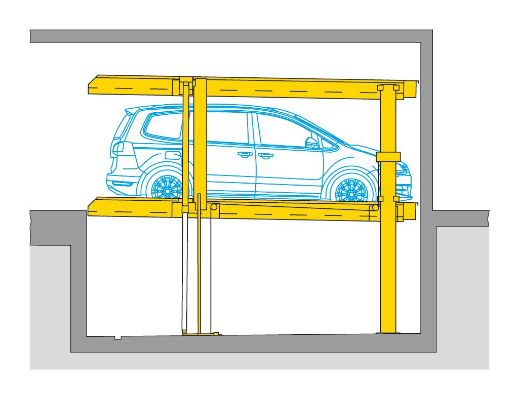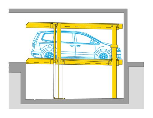 The Combiparker 560 offers a variable parking space concept with up to five parking levels, providing unrivalled flexibility with the ability to build four levels up or four levels down from the entrance level. With a standard underground car park floor height of 2.50 metres, this system maximises space savings by allowing up to four levels below ground, making it one of the most versatile parking solutions available. The Combiparker 560 can accommodate a wide range of vehicle sizes and offers up to 750 layout options. In addition, all parking bays can be equipped with charging stations for electric vehicles, further supporting sustainable initiatives.