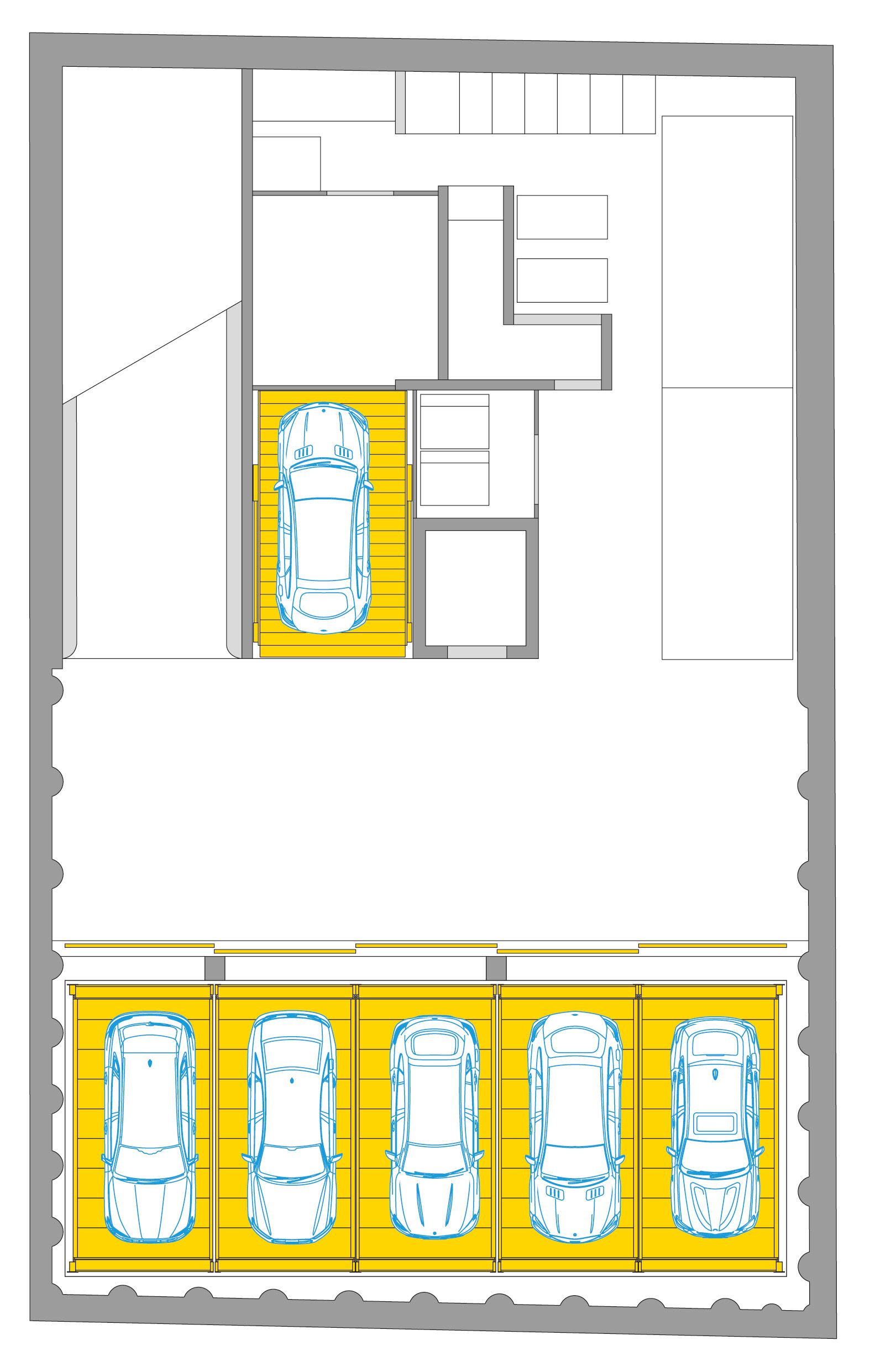 The Themeda project in Brunswick, near Melbourne, is an example of a pioneering initiative in the field of sustainable urban development that demonstrates the potential of environmentally friendly infrastructure. 13 cars are parked in an area of only 5 conventional parking spaces!