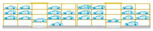 22 dream cars are housed in the two Slimparker 557s in a very special parking lot. These vehicles are stacked on three levels in the fully automated parking system on the museum façade. Thanks to the special paint finish in pure white, the system harmonizes perfectly with the museum ambience and presents the vehicles in all their glory.