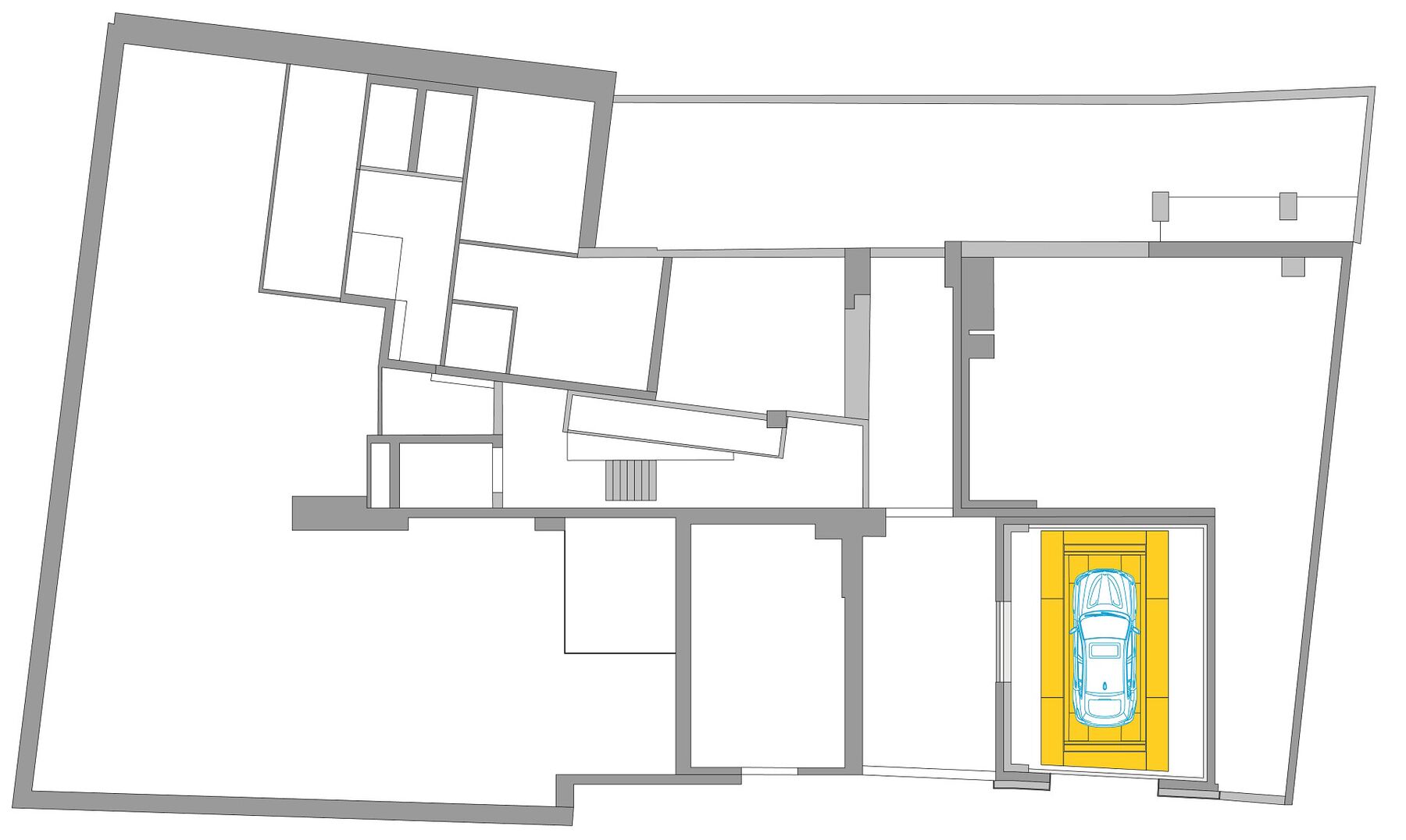 - Rotation device on the lowest parking level for 180° rotation of the car in exit direction