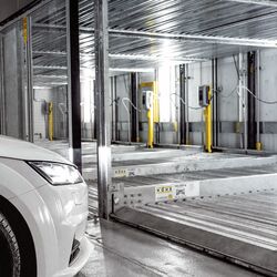 State-of-the-art living combined with space-saving parking: the semi-automatic parking systems of the type Combilift 543, 551 and 552 offer the residents of the housing project in Oslo 100 parking places for their vehicles.