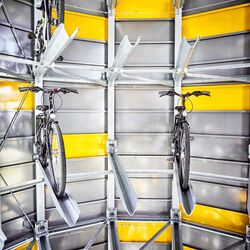Muchas veces no basta con asegurar la bici con un candado para protegerla contra los ladrones. En cambio, en nuestro cómodo Bikesafe las bicis estarán guardadas y aseguradas bajo llave ocupando muy poco espacio. En la variante del Bikesafe en forma de torre, con hasta ocho niveles, se pueden estacionar más de 120 bicicletas. El diseño de este sistema para bicicletas requiere una superficie de montaje muy reducida, lo que permite ahorrar mucho espacio. Dependiendo de las particularidades de cada caso, se puede elegir entre tres variantes: túnel, torre o mixta. En el Bikesafe se puede guardar cualquier bici de tipo convencional, incluidas pedelecs y bicis eléctricas, de hasta 30 kg de peso.