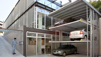Estacionamiento discreto con ventaja climática. El proyecto de rehabilitación en Madrid con elevadores de estacionamiento WÖHR recibe la máxima certificación ecológica.