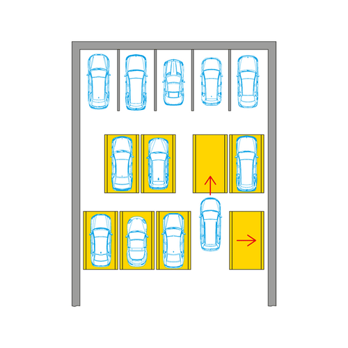 El espacio de aparcamiento subterráneo se usa de manera óptima. Plazas de aparcamiento adicionales sin niveles de aparcamiento adicionales ni rampas. Más plazas de aparcamiento. Menos área.