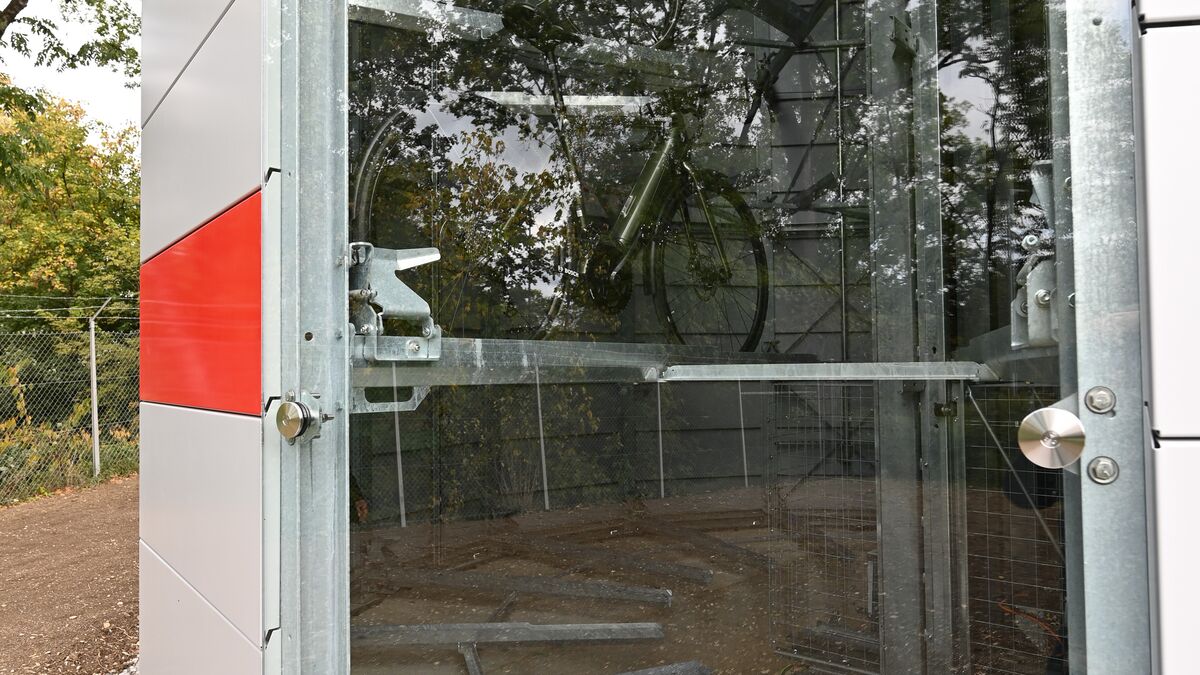 La fachada cilíndrica del Sistema WÖHR Bikesafes se diseñó a partir de los colores corporativos del cliente. Ferhan Niepelt: „Cada fachada Bikesafe se puede adaptar a los deseos del cliente. Ya sea madera, acero o vidrio, incluso una fachada ecologica, es posible“.