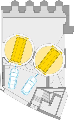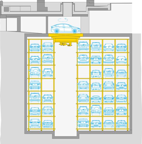 El Palais Coburg ofrece a los huéspedes del hotel y a los residentes del casco antiguo, 79 plazas de aparcamiento exclusivas de última tecnología. En 7 niveles de estacionamiento bajo rasante, el sistema WÖHR Parksafe 580 almacena de forma segura y totalmente automática los vehículos, en un volumen de excavación muchísimo menor comparado con el aparcamiento tradicional. A nivel de calle se encuentran dos cabinas de transferencia cuya amplitud e iluminación es apreciada rapidamente por el usuario. A traves de un monitor en cada área de transferencia, el conductor es guiado a través del proceso de estacionamiento. Una vez que el usuario abandona la cabina de transferencia y confirma el aparcamiento, el vehículo es transportado de forma automática a un estante libre. El sistema WÖHR Parksafe 580 es seguro y fiable.