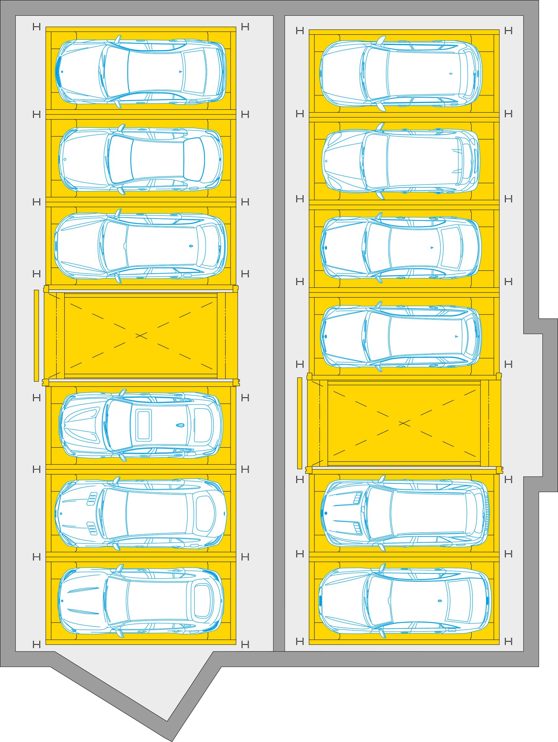 - Volumen por espacio de estacionamiento de aproximadamente 6,7 m³