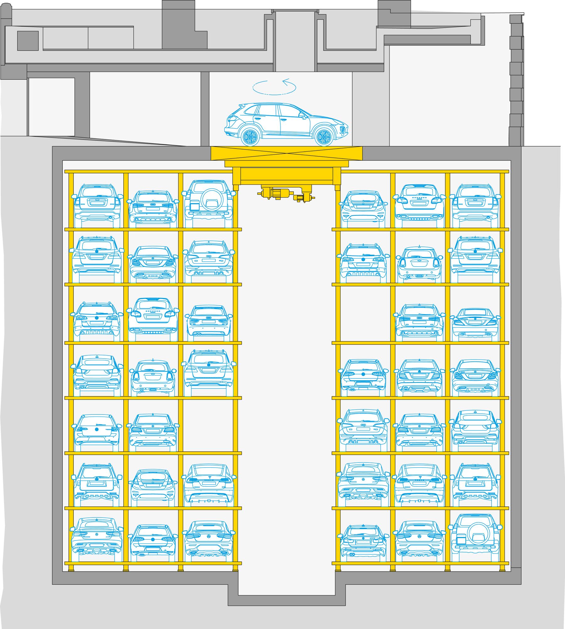 Residencia imperial con un aparcamiento de automatico WÖHR Parksafe 580, de última generación y máximo confort.